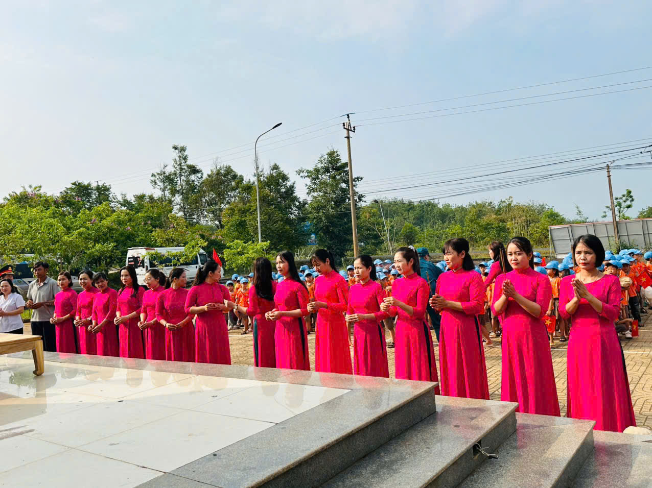 🕯️ Các bé cùng cô dâng hương trang nghiêm, thể hiện lòng biết ơn sâu sắc ❤️