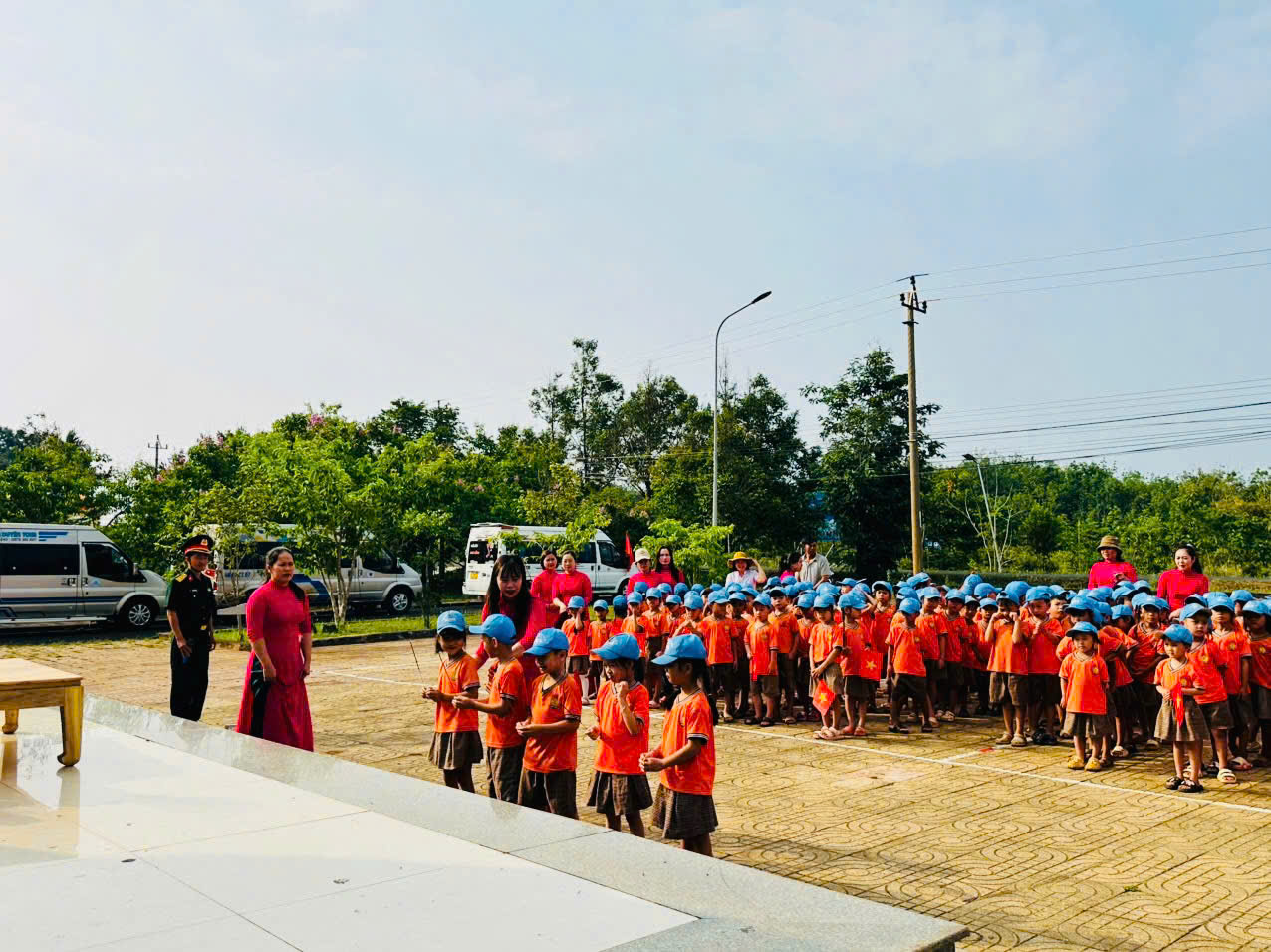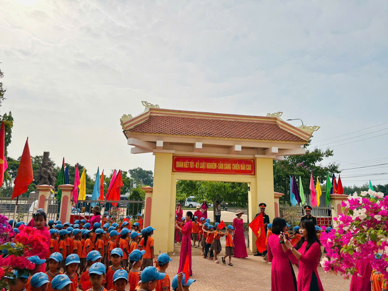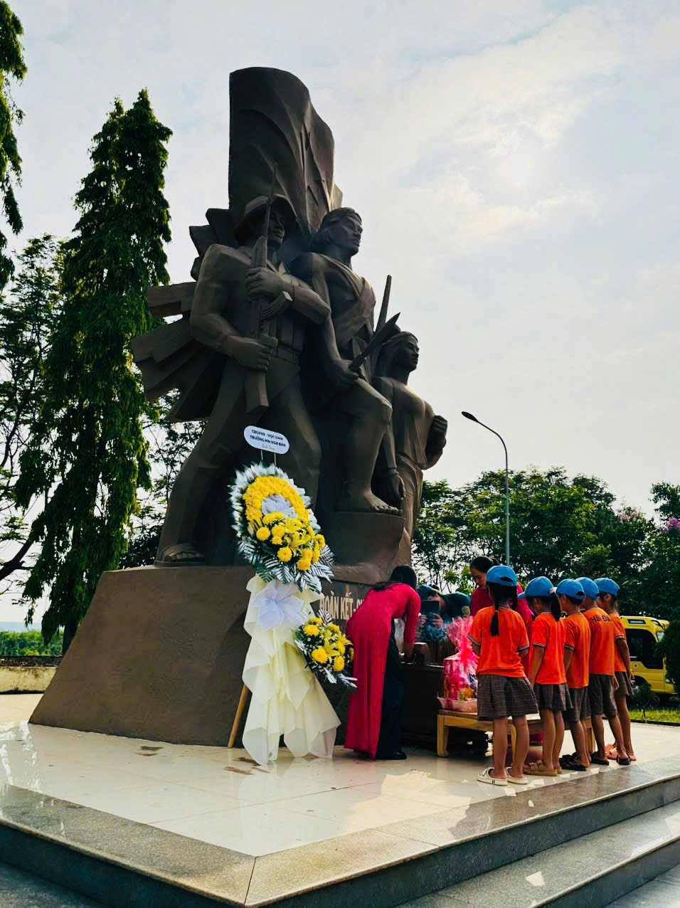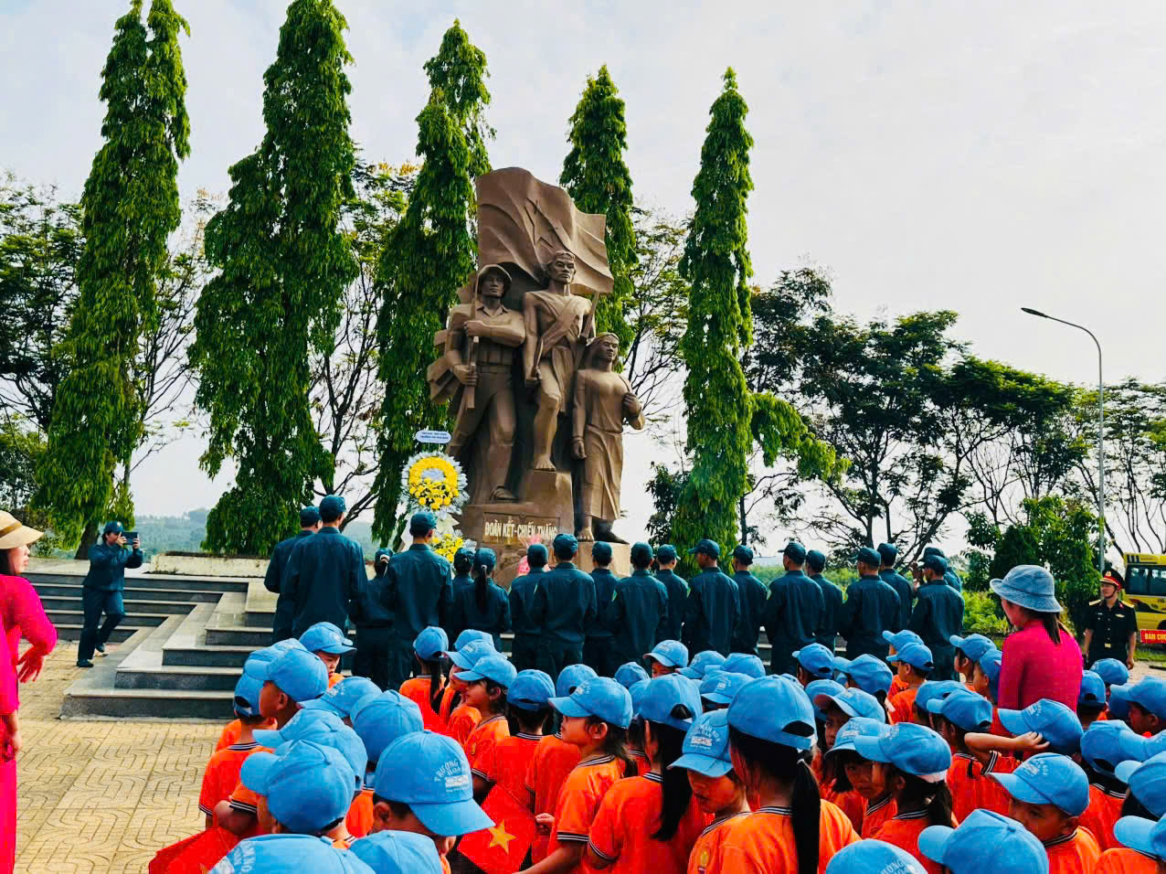 🚌 Trẻ tham quan Tượng đài B4 tại Thôn Nam Tiến – xã Nâm Nung, được giới thiệu về vị trí, đặc điểm và ý nghĩa lịch sử của di tích 📍