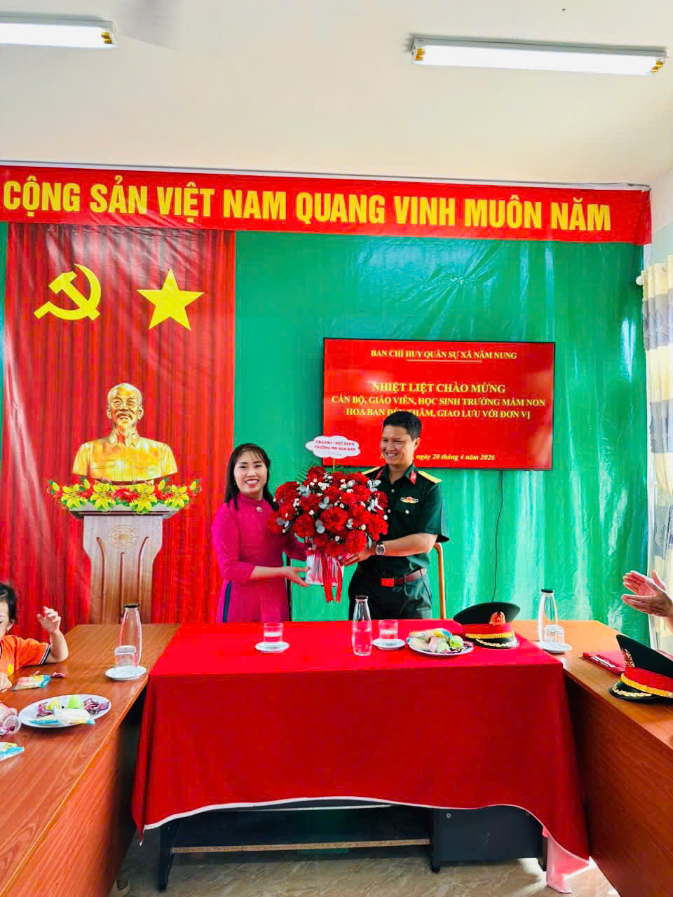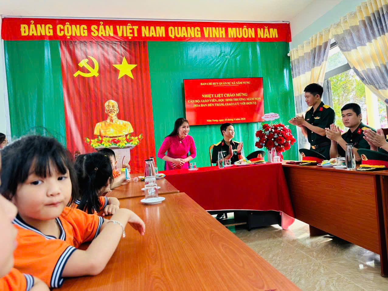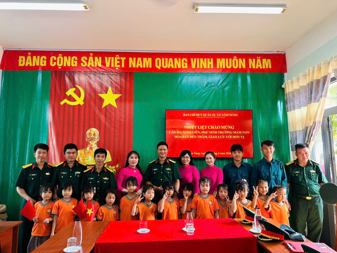 ✨ Thực hiện chủ đề giáo dục “Nâm Nung của bé” và chào mừng 51 năm ngày giải phóng Miền Nam thống nhất đất nước 30/4. Hôm nay, ngày 20/4/2026 trường mầm non Hoa Ban, xã Nâm Nung, tỉnh Lâm đồng tổ chức cho trẻ 5 tuổi thăm quan, trải nghiệm, dâng hương tượng đài B4, thôn Nam Tiến, xã Nâm Nung. Trẻ được tới thăm nơi làm việc của ban chỉ huy quân sự xã Nâm Nung, tỉnh Lâm Đồng.