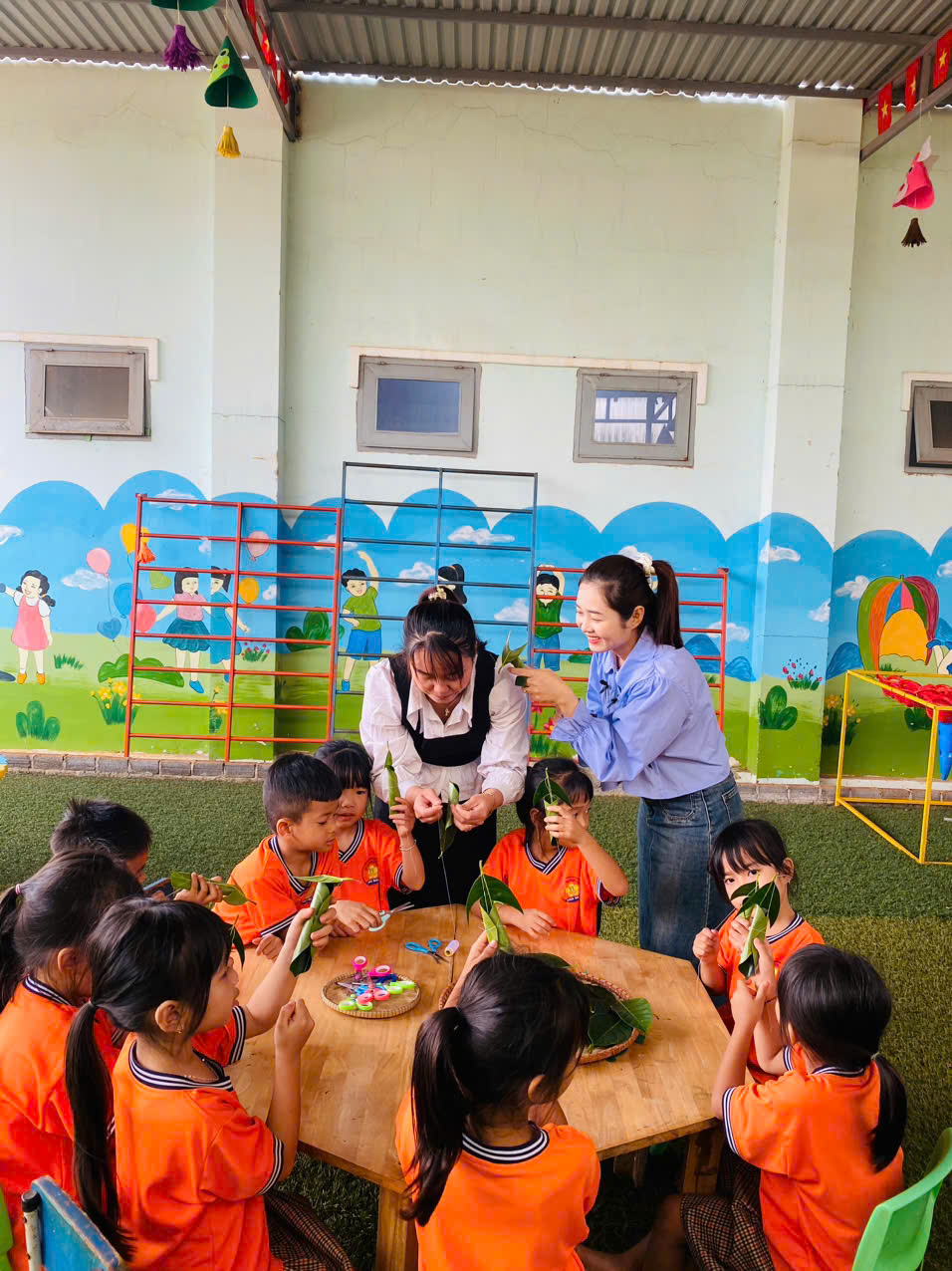 Các bé trường mầm non đã có một hoạt động trải nghiệm thật thú vị khi cùng cô sáng tạo đồ chơi từ lá cây: chú trâu ngộ nghĩnh từ lá mít, chiếc đồng hồ xinh xắn từ lá chuối… Từ những vật liệu thiên nhiên gần gũi, các con không chỉ rèn luyện sự khéo léo, trí tưởng tượng phong phú mà còn được sống lại những trò chơi dân gian mộc mạc, thân thương của tuổi thơ. 🌿